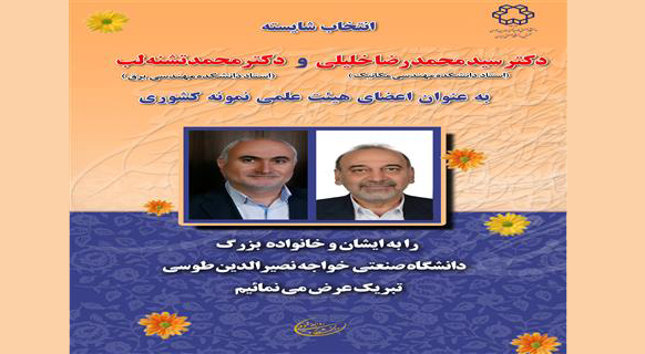 دو استاد دانشگاه صنعتی خواجه نصیرالدین طوسی در میان اساتید نمونه کشوری