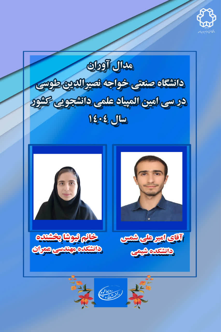 به گزارش روابط عمومی، دانشجویان دانشگاه صنعتی خواجه نصیرالدین طوسی در سیامین المپیاد علمی دانشجویی کشور موفق به افتخارآفرینی و کسب 2 مدال برنز شدند.